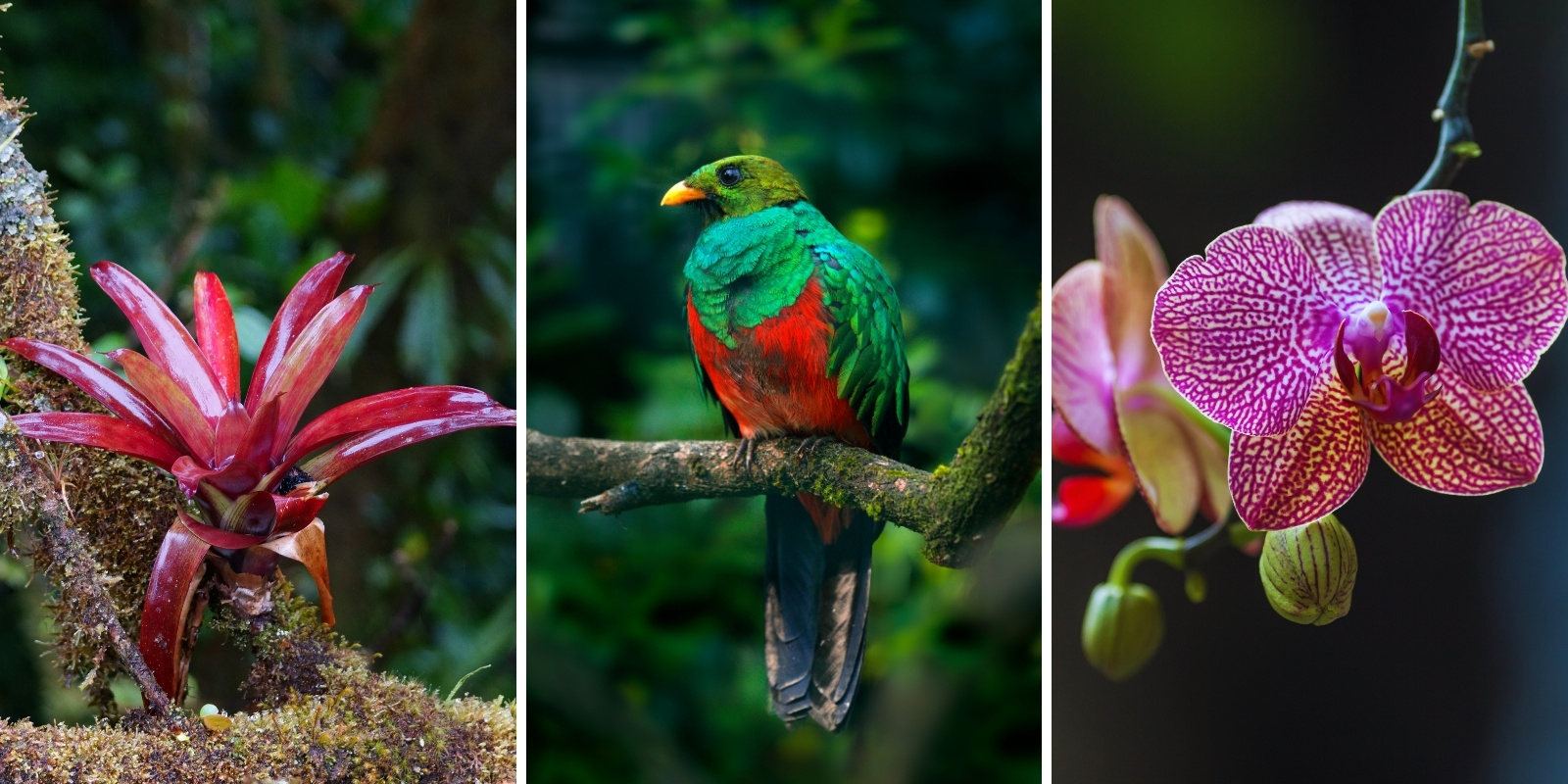 Golden-headed Quetzal (Pharomachrus auriceps): With iridescent feathers, it lives in aguacatillo trees.